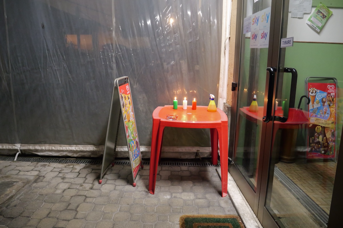 I lumini per il 9 febbraio, all’ingresso di un circolo del PRI a Ravenna (Matteo Castellucci/il Post)