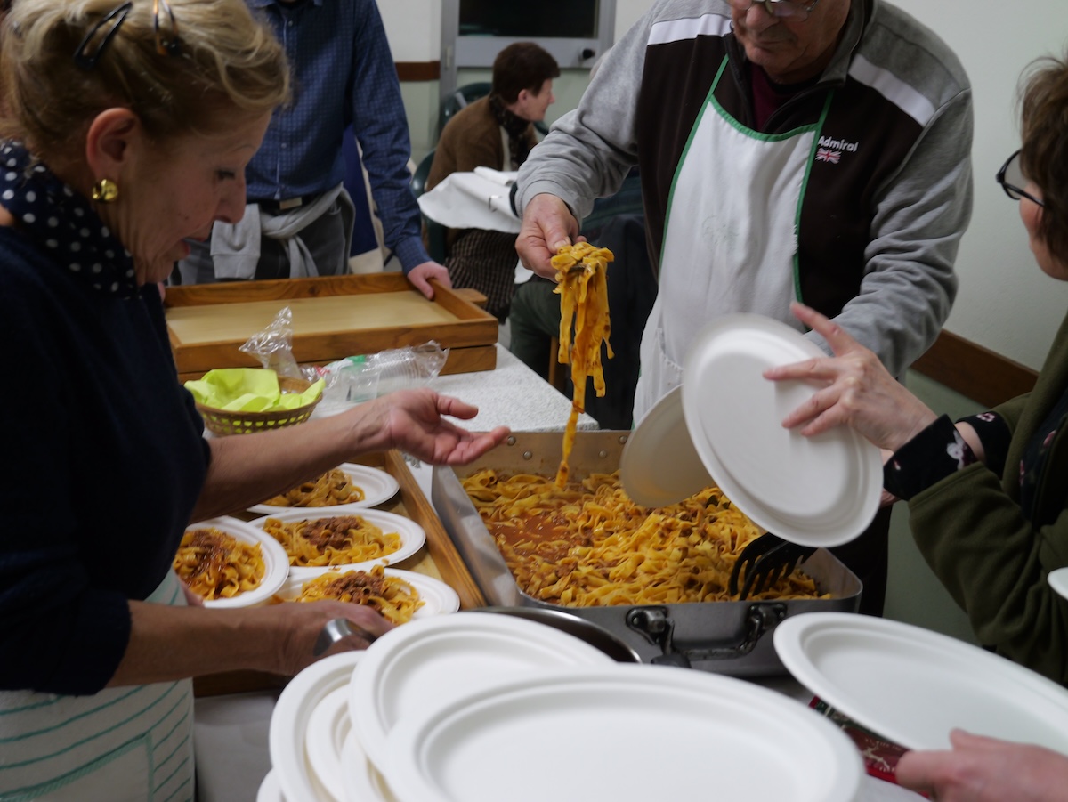 Le tagliatelle al ragù di cinghiale; c’erano anche al sugo di pomodoro per le persone vegetariane (Matteo Castellucci/il Post)