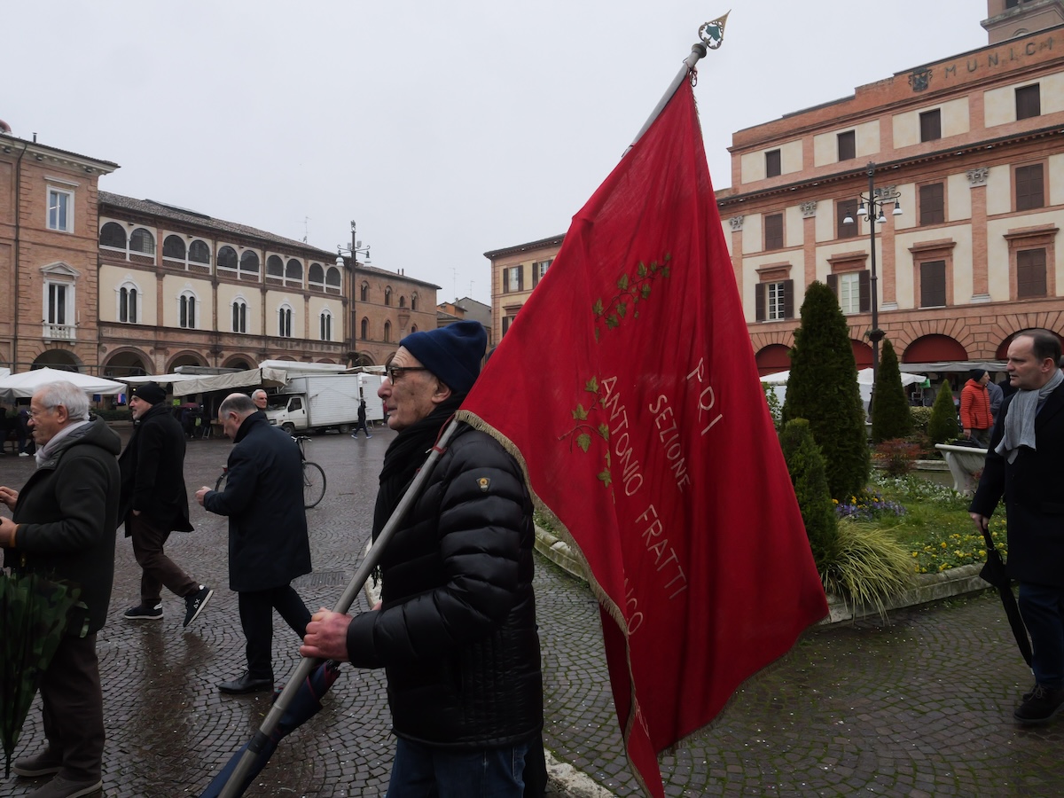 Durante la cerimonia per il 9 febbraio in piazza Aurelio Saffi, che fu uno dei triumviri della Repubblica Romana, a Forlì (Matteo Castellucci/il Post)