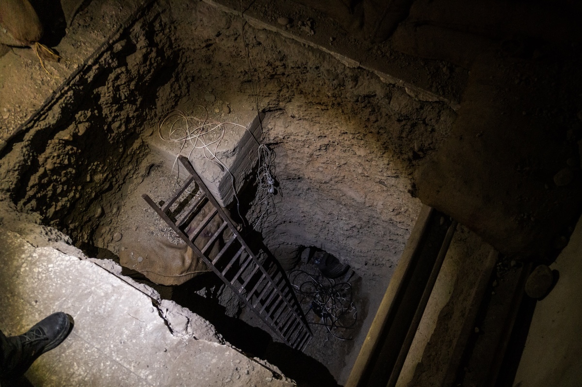 Accanto ai pozzi sono rimaste scatole di munizioni, abbandonate nella fretta della ritirata. Il terzo accesso è diverso: una scalinata comoda in cemento che poi diventa un tunnel. I soldati si inoltrano per qualche decina di metri, alla luce dei telefoni, poi si fermano. Dicono che è meglio non andare oltre perché ci potrebbero essere delle mine.