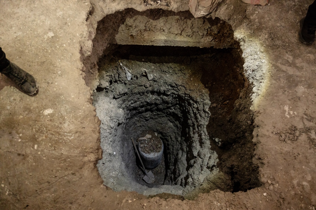 Un pozzo d’accesso ai tunnel scavati sotto la chiesa di Tabqa (Gabriele Micalizzi, CESURA, per il Post)