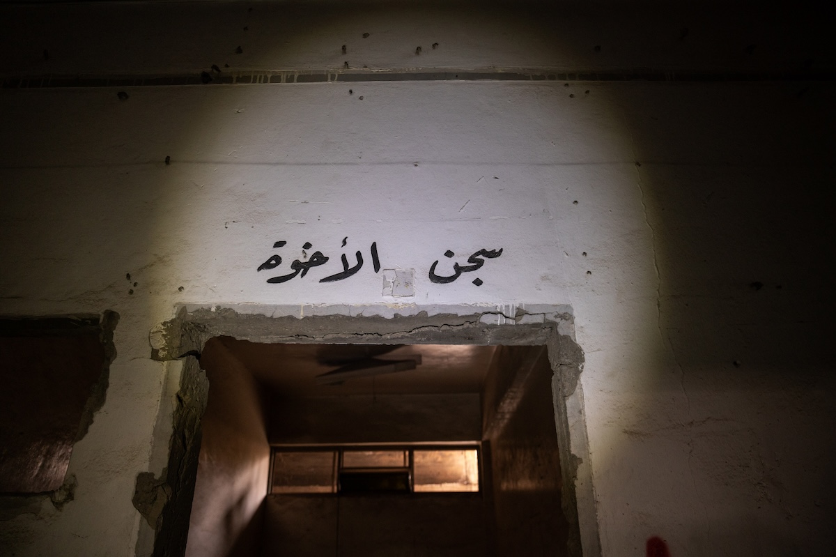 La scritta «prigione dei fratelli» su una cella per gli uomini dello Stato Islamico che avevano violato le regole ed erano in attesa di giudizio (Gabriele Micalizzi, CESURA, per il Post)