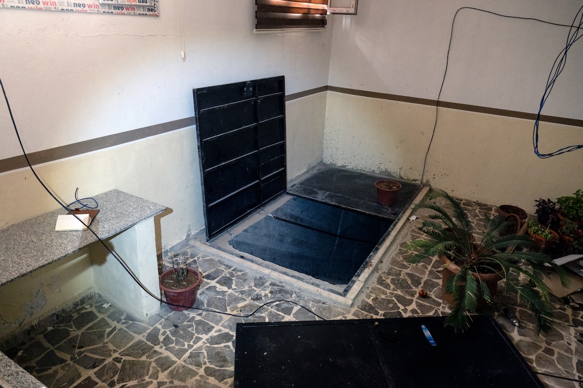 Una botola che porta ai tunnel scavati sotto la chiesa di Tabqa (Gabriele Micalizzi, CESURA, per il Post)