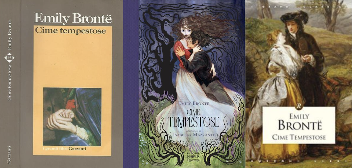 Essendo uscito nel 1847 ed essendo quindi scaduti i diritti d’autore da un bel po’, solo in Italia negli anni sono state pubblicate decine di edizioni di Cime tempestose con copertine ogni volta diverse: ognuna mette in evidenza l’aspetto con cui pensa che riuscirà a raggiungere più facilmente il pubblico.