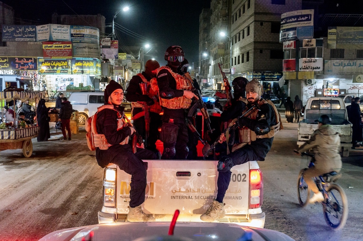 L’ufficiale al comando di una pattuglia della Sicurezza Interna in una via di Raqqa dice che «va tutto bene», ma si riferisce al passaggio di consegne dai curdi avvenuto senza combattimenti e non ai rischi in città. Lungo la strada che dalla capitale Damasco porta a Raqqa, in nove ore di viaggio, si incrociano autobus carichi di agenti in divisa nera diretti verso l’est del paese, per controllare le città lasciate dalle milizie curde. Il 30 gennaio due di loro sono stati uccisi in uno scontro a fuoco vicino a Deir Ezzor, in circostanze ancora poco chiare.