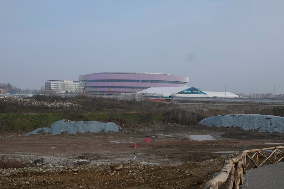 Quello che generalmente sorprende gli spettatori invece è il luogo in cui si trova: un’arena così moderna inserita in un panorama così spoglio è piuttosto spiazzante per chi arriva. È in una zona poco abitata del quartiere di Santa Giulia, che si trova nella periferia sud-est di Milano. Di fianco all’arena ci sono un parcheggio multipiano da circa 2.000 posti – che è stato fatto costruire da Eventim ed è pronto, ma si è deciso di non usarlo per le Olimpiadi – e appunto alcuni terreni.
