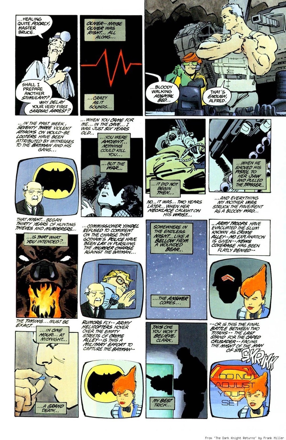 Anche se fu pubblicato da una casa editrice con enormi possibilità di distribuzione come la DC Comics, e pur avendo per protagonista uno dei personaggi di finzione più famosi al mondo, Batman – Il ritorno del cavaliere oscuro ha molto poco a che fare con l’intrattenimento disimpegnato, ingenuo e impalpabile tipico di molte storie di supereroi del tempo.