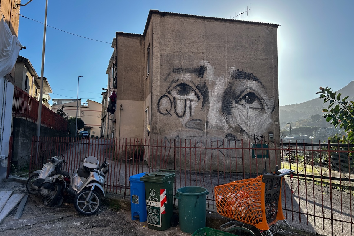 Un murale nel quartiere attorno alle fonderie Pisano (Angelo Mastrandrea/il Post)