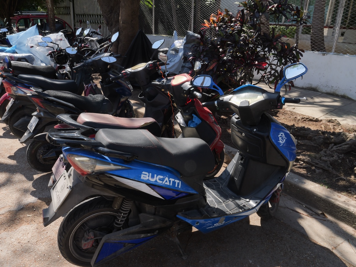 Le auto elettriche sono ancora una rarità, ma scooter e motorini sono piuttosto diffusi. Arrivano tutti dalla Cina, sull’isola le chiamano “motorinas” e hanno nomi strani, che sembrano storpiature di marche famose: Bucatti (che suona come un mix fra Ducati e Bugatti), Isuki, Mishozuki. I modelli più elaborati hanno luci stroboscopiche lungo la carrozzeria e potenti casse con cui far sentire musica ad alto volume al proprio passaggio.