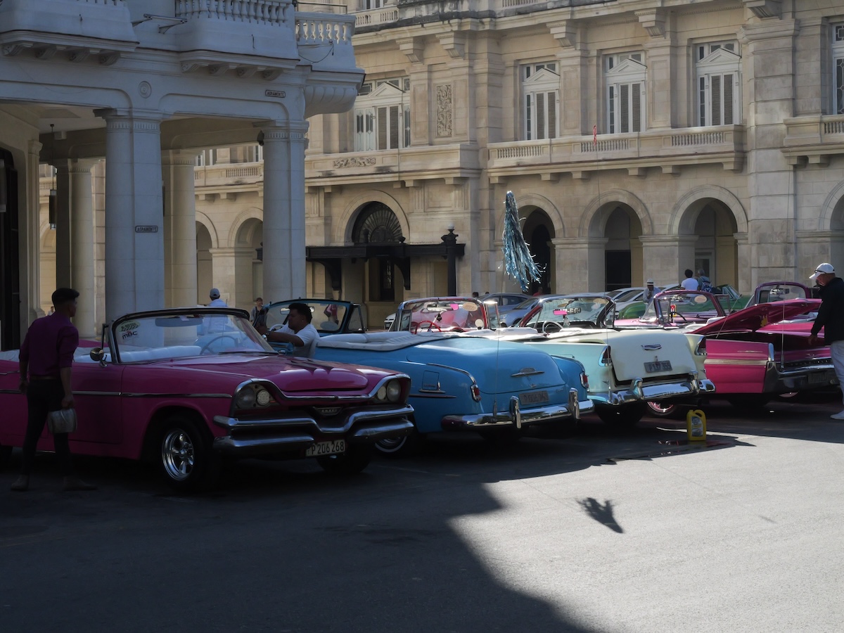 Auto decappottabili utilizzate per fare tour turistici nel centro dell’Havana, il 14 febbraio 2026 (Valerio Clari/il Post)