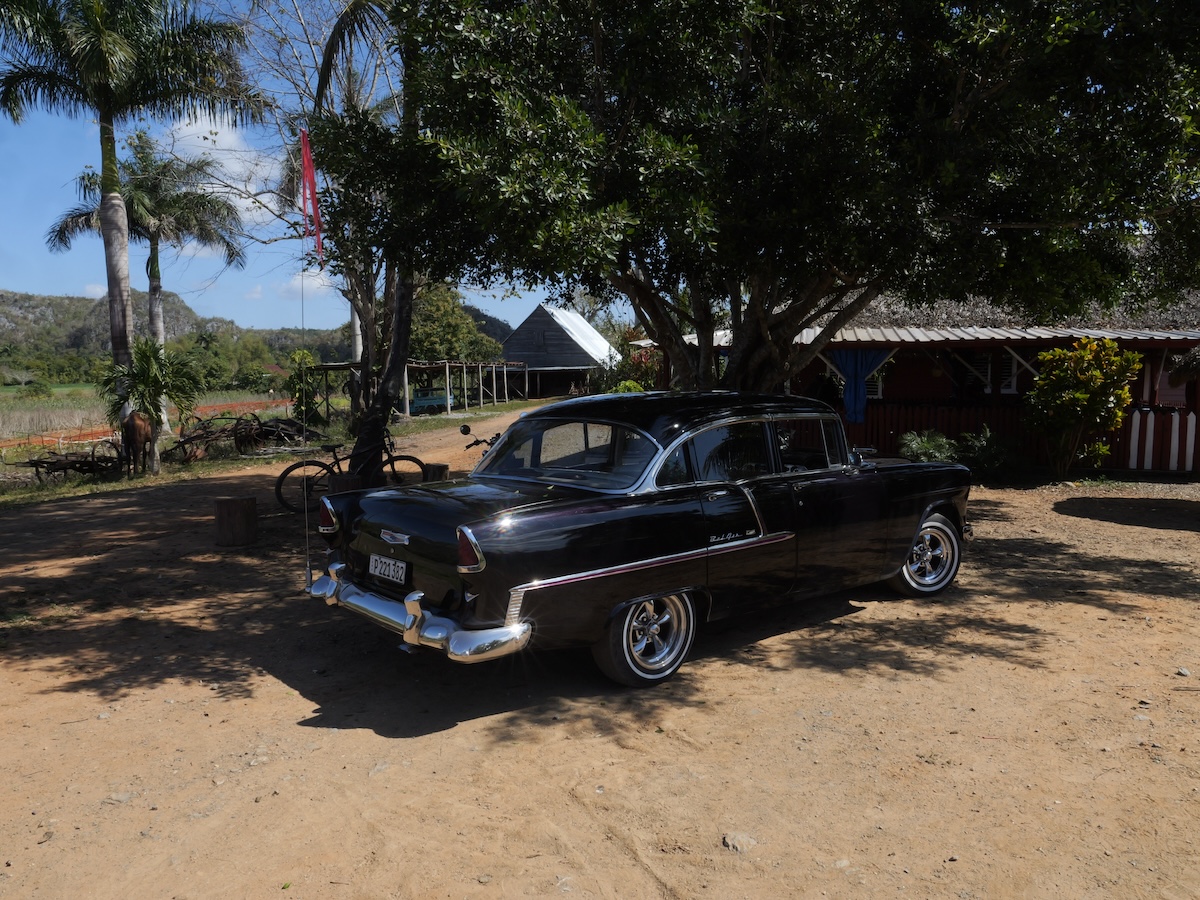 Una delle auto d’epoca statunitensi, spesso risalenti agli anni Cinquanta, modificate e sistemate nei decenni successivi, a Viñales, il 16 febbraio 2026 (Valerio Clari/il Post)