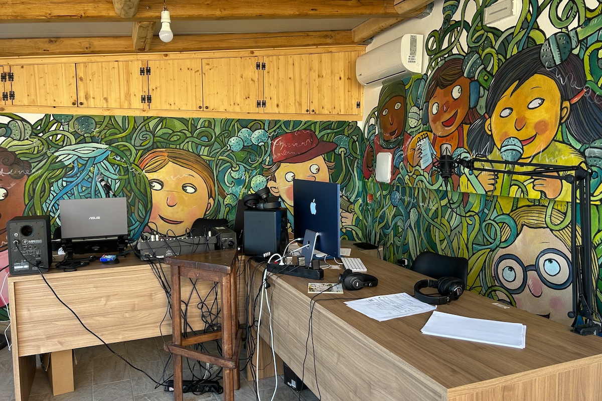 La redazione della web radio Jungi Mundu a Camini, 17 dicembre 2025 (Angelo Mastrandrea/il Post)