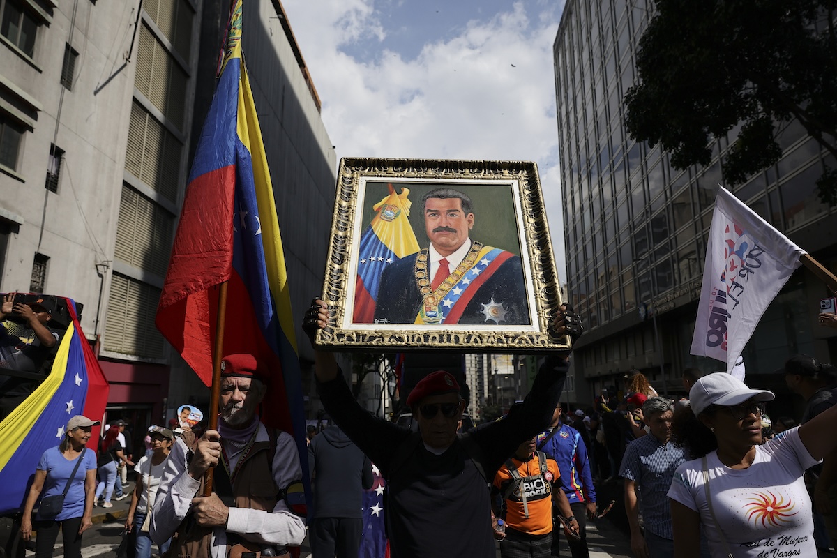 Un ritratto di Maduro durante una protesta a Caracas, in Venezuela, il 6 gennaio 2026 (Jesus Vargas/Getty Images)
