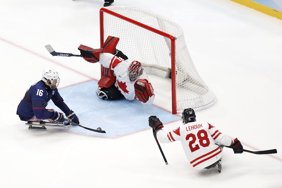 Una partita tra Canada e Stati Uniti – che anche qui sono le due squadre più forti – alle Paralimpiadi di Pechino, 13 marzo 2022 (Steph Chambers/Getty Images)