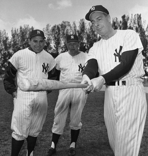 Joe DiMaggio (in primo piano) con l’uniforme dei New York Yankees, 9 marzo 1961 (AP Photo/Harry Harris)