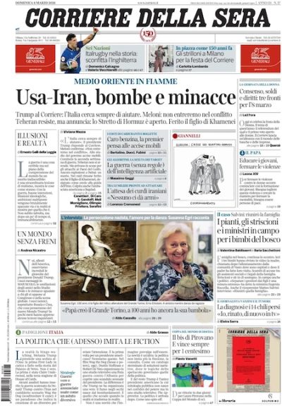 La maggior parte dei giornali di oggi mette in prima pagina ancora la guerra in Medio Oriente, soffermandosi però su diversi aspetti: c’è chi titola sui bombardamenti, chi sulla situazione nello stretto di Hormuz oppure sui timori che la guerra faccia alzare ancora i prezzi dei carburanti e quindi del costo della vita in generale. Le altre questioni trattate sulle prime pagine sono il referendum sulla riforma della magistratura, la vicenda della “famiglia nel bosco” e la Giornata internazionale della donna, che è oggi.