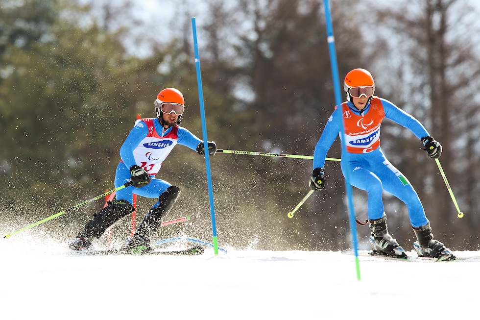 Fabrizio Casal e Giacomo Bertagnolli nello slalom speciale alle Olimpiadi di Pyeongchang 2018 (Lintao Zhang/Getty Images)