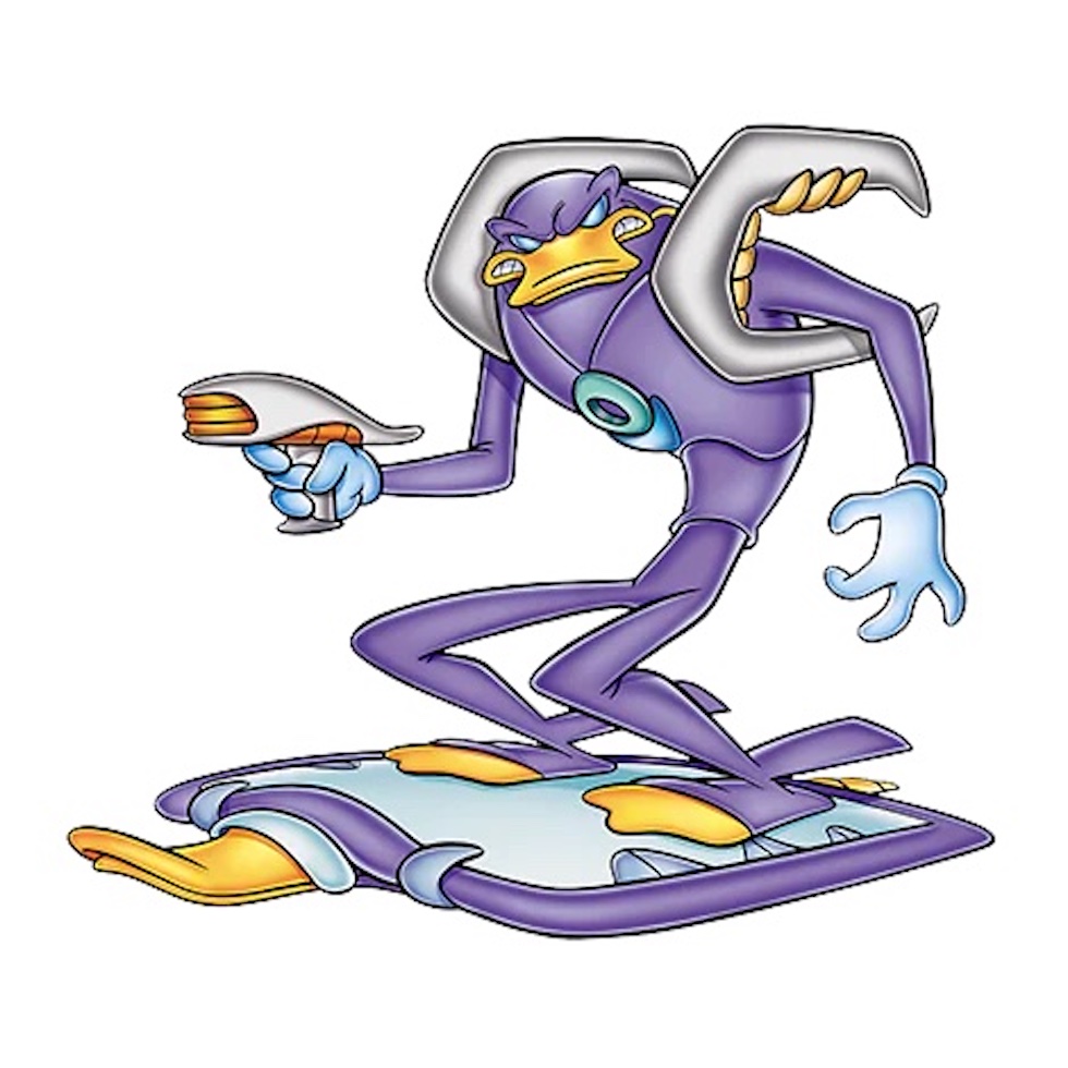 E poi stravolsero tutto il resto: trasformarono Paperopoli in una metropoli oscura, futuristica e dominata da enormi e opprimenti grattacieli, un po’ come la Gotham City di Batman; si inventarono gli Evroniani, un’avanzatissima civiltà aliena che si nutre delle paure degli esseri umani e che ha in programma di colonizzare la Terra; e introdussero nella storia elementi tipici della fantascienza degli anni Settanta e Ottanta, dalla coscienza delle macchine ai viaggi nel tempo.