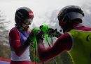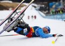 Patrick Halgren (Stati Uniti) dopo essere caduto nella finale di discesa libera di sci alpino, Cortina d'Ampezzo, 7 marzo(Linnea Rheborg/Getty Images)