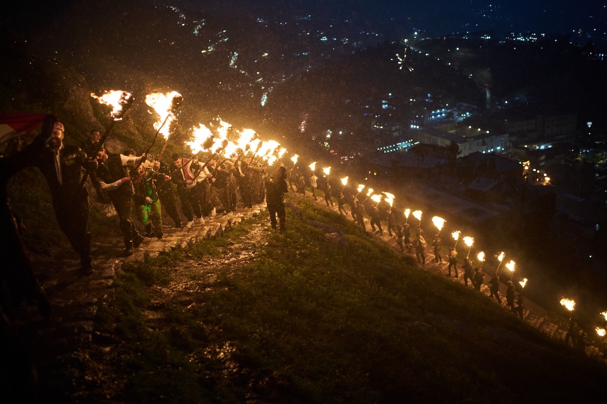 Curdi iracheni festeggiano l’inizio dell’anno persiano nel Kurdistan iracheno, il 20 marzo del 2026 (AP Photo/Leo Correa)