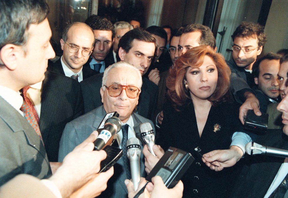 Filippo Mancuso dopo la seduta del Senato sulla mozione di sfiducia nei suoi confronti, il 20 ottobre 1995 (ANSA)