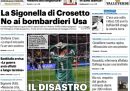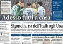 Sono due le notizie principali sulle prime pagine di oggi: la decisione del governo italiano di negare agli Stati Uniti l’uso della base militare siciliana di Sigonella per gli aerei impegnati nelle missioni per la guerra in Medio Oriente, e l’eliminazione della nazionale maschile di calcio italiana dai prossimi Mondiali, dopo la sconfitta ai rigori contro la Bosnia Erzegovina; per questa notizia le espressioni usate nei titoli vanno da “disastro” a “fallimento”, a “tracollo”, fino a “psicodramma”. Il Sole 24 Ore si occupa invece degli effetti sulle tariffe energetiche e sull’economia mondiale della guerra in Medio Oriente, mentre la Verità apre sull’inchiesta a Milano sulla vendita dello stadio di San Siro, nella quale sono indagate nove persone fra dirigenti del comune e consulenti di Inter e Milan.