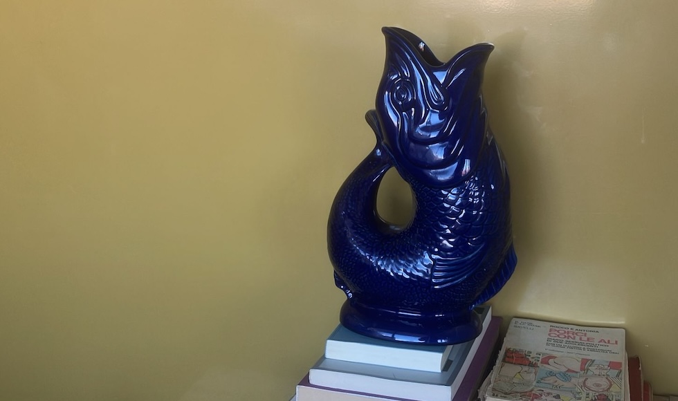 Quella caraffa gorgogliante, da anni tra i regali di Natale più apprezzati da redattori e lettori del Post. Per chi non ne avesse mai sentito parlare: è una caraffa a forma di pesce che fa “glugluglu” (ovvero gorgoglia come una gola che deglutisce) sia quando si versa l’acqua, sia quando la si ripone e l’acqua torna verso il fondo. Si chiama “Gluggle Jug”, un nome onomatopeico comprensibile anche da chi non sa l’inglese. La redattrice che l’ha comprata sentiva di essere «una delle poche persone del Post a non averla» e ha rimediato. Esiste in tantissimi colori e dimensioni diverse: lei ha preso la XL color blu scuro a 64 euro sul sito Gluckigluck.