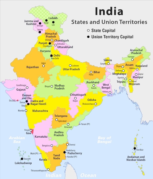 Gli stati dell’India (Maximilian Dörrbecker, Chumwa, via Wikimedia Commons)