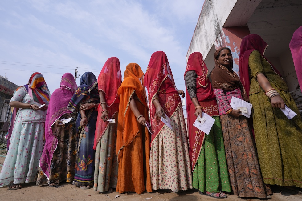 Donne in coda per votare vicino ad Ajmer per le elezioni del 2023 (AP Photo/ Deepak Sharma)