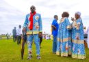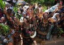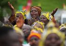 L'accoglienza per papa Leone XIV vicino all'aeroporto di Yaoundé-Nsimalen, Camerun, 15 aprile (AP Photo/Andrew Medichini)
