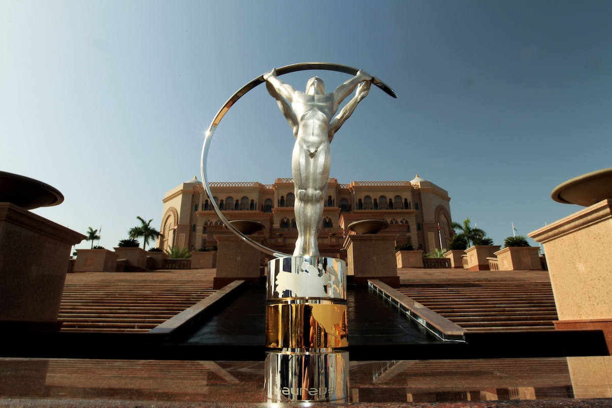 La statuetta dei premi Laureus, nel 2010 ad Abu Dhabi, negli Emirati Arabi Uniti (Cannon/Getty Images for Laureus)