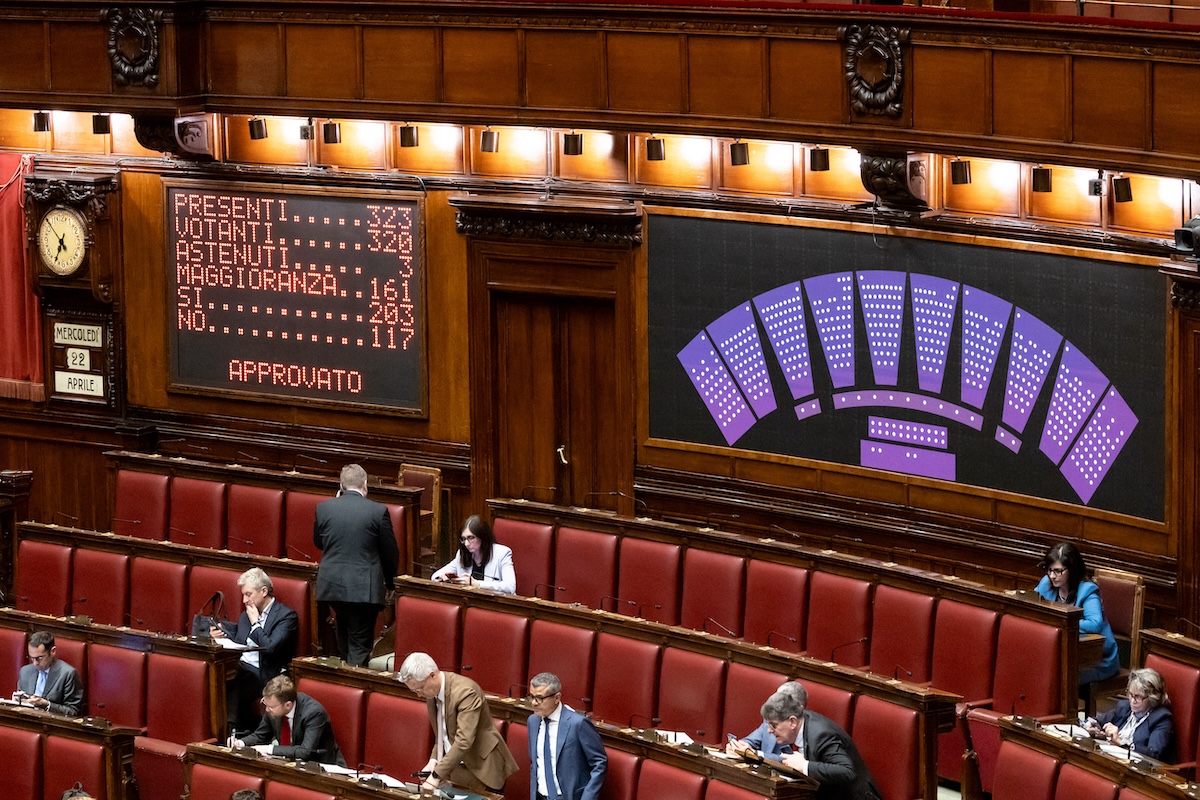 Il risultato del voto di fiducia alla Camera dei deputati per la conversione in legge del decreto-legge sulla sicurezza, 22 aprile 2026 (Mauro Scrobogna/LaPresse)
