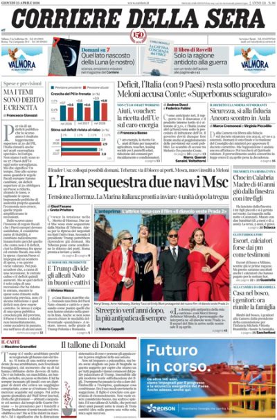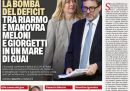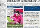 Su tutti i giornali di oggi la notizia in apertura è la conferma da parte di Eurostat, l’ufficio di statistica dell’Unione Europea, che il rapporto deficit/PIL italiano nel 2025 è stato del 3,1 per cento, di poco superiore al limite del 3 per cento consentito dai trattati europei, e non permette quindi all’Italia di uscire dalla procedura di infrazione per deficit eccessivo. Le altre notizie principali sono il sequestro da parte dell’Iran di due navi nello stretto di Hormuz e il voto di fiducia alla Camera per l’approvazione del “decreto sicurezza”, con un nuovo decreto che dovrebbe arrivare domani in Consiglio dei ministri per accogliere le obiezioni della presidenza della Repubblica alla norma che prevede un compenso per gli avvocati che convincano le persone migranti ad accettare il rimpatrio volontario.