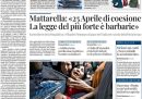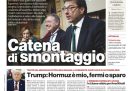 Ci sono notizie diverse in apertura sui giornali di oggi: diversi si occupano dei negoziati fra Iran e Stati Uniti per arrivare a una tregua nella guerra in Medio Oriente e delle nuove dichiarazioni del presidente degli Stati Uniti Trump sul blocco dello stretto di Hormuz, altri titolano sul superamento della soglia del 3 per cento del rapporto deficit/PIL dell’Italia certificato da Eurostat e sulla contrarietà della presidente del Consiglio Meloni per questa vicenda, altri ancora sulle parole del presidente della Repubblica Mattarella in occasione dell’anniversario della liberazione dal nazifascismo che ricorre domani. Il Sole 24 Ore apre invece con i dati delle dichiarazioni dei redditi in Italia, mentre il Giornale si occupa del “decreto sicurezza” e dei rimpatri delle persone migranti.