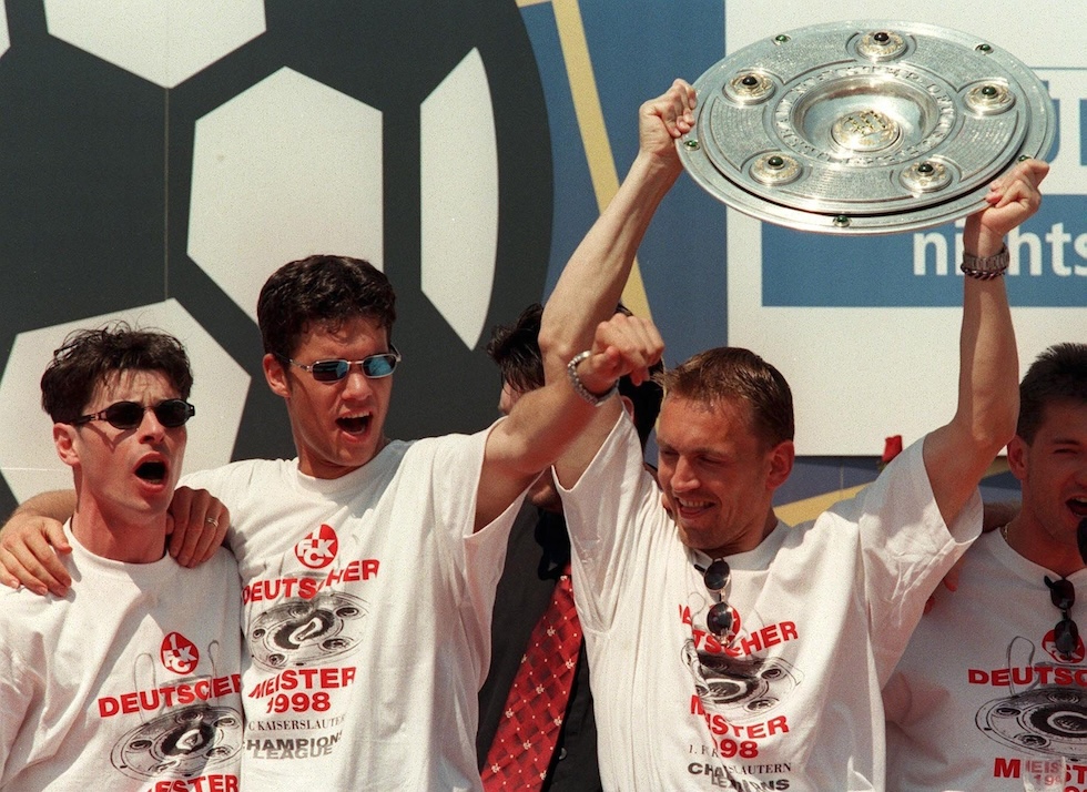 Vent’anni dopo in Germania ci fu quella che, come anticipato, rimane la più recente tra queste imprese, perlomeno considerando solo i principali campionati europei. Nel 1998 il Kaiserslautern vinse il campionato tedesco contro ogni pronostico, anche se non era il suo primo titolo, ma il quarto. Nel 1996 la squadra era retrocessa in seconda divisione (pur vincendo la Coppa di Germania) e al termine della stagione aveva ingaggiato l’esperto allenatore Otto Rehhagel, esonerato un anno prima dal Bayern Monaco e vincitore poi nel 2004 di un incredibile campionato europeo con la Grecia.