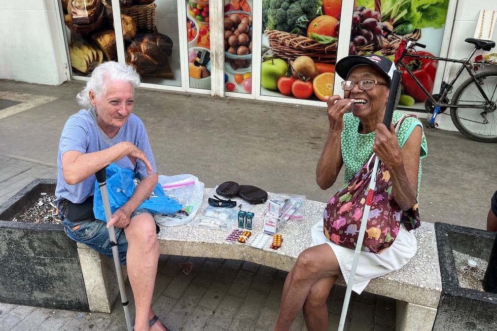 Due donne vendono medicine lungo una via dell’Avana, il 22 febbraio 2026 (Valerio Clari/il Post)