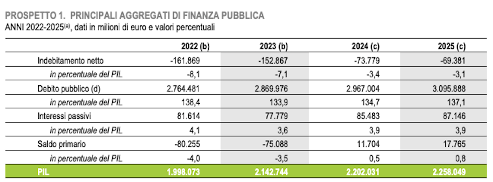 La tabella sui saldi di finanza pubblica contenuta nel dossier dell’ISTAT