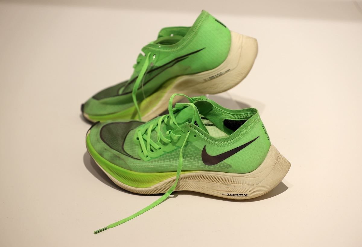 Le Nike ZoomX Vaporfly in mostra a Londra nel 2020 (Mike Marsland/WireImage)