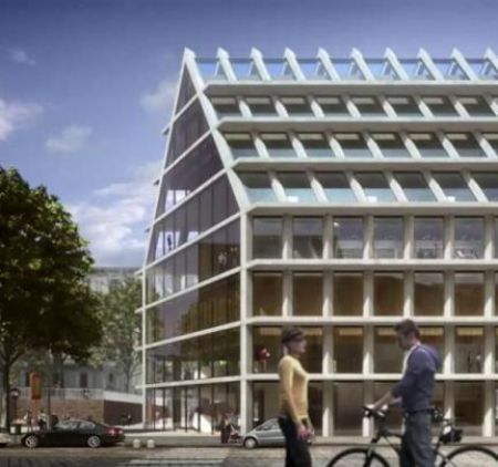 La costruzione del palazzo, opera dello studio internazionale di architettura Herzog & de Meuron, è stata abbastanza combattuta nella zona: ci sono voluti anni, riunioni su riunioni con i cittadini, per arrivare ad avere un blocco di sei piani che prendesse il posto di un enorme vivaio che abitava lo spazio di risulta del giro delle vecchie mura spagnole. Alla fine l’obiettivo, ammesso che fosse questo, è stato raggiunto: creare una struttura mastodontica, abbastanza sgraziata, che sembra il rendering di se stessa. Tutti i giornali che hanno parlato della nuova casa di Microsoft all’indomani dell’inaugurazione sottolineano (come da comunicato stampa) che il palazzo ha ben 832 vetrate. Ma in realtà ha un numero impressionante di campate di cemento a vista sulla facciata che le racchiudono. E tutte queste campate di cemento vi assicuro che si notano.