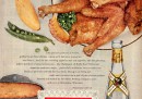 Le pubblicità raccontano anche come stavano cambiando all’epoca le famiglie e il ruolo delle donne: molte cominciavano a dividersi tra le faccende domestiche e il lavoro e quindi poter servire una cena dopo averla semplicemente scaldata o cucinare una torta servendosi di un preparato faceva sempre più comodo. Altre vecchie pubblicità sono interessanti perché mostrano una continuità con quelle di oggi: Kellogg’s presentava già i suoi cereali come nutrienti e salutari, c’erano le Sottilette Kraft, i biscotti predecessori degli Oreo e la crema di funghi Campbell, da servire a una cena raffinata senza che gli ospiti capissero che non l’aveva fatta la padrona di casa. Questi annunci ci dicono anche cosa all’epoca venisse considerato buono da mangiare, e di come sono cambiati nel tempo i nostri gusti (o perlomeno quelli degli americani contemporanei).