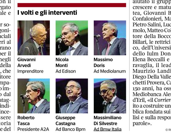 Corriere della Sera sta in questi giorni celebrando i suoi centocinquant’anni. Venerdì c’è stata una serata alla Scala di Milano, e nelle pagine di sabato dedicate all’evento sono stati ampiamente citati, anche con una gallery fotografica, i responsabili di alcune delle aziende che sono tra i maggiori inserzionisti del giornale (persino nello stesso giorno). L’acquirente della pagina pubblicitaria immediatamente successiva era citato già nei titoli dell’articolo.