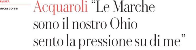Se torniamo a parlarne, è perché – indifferenti all’attualità – i quotidiani italiani da settimane stanno applicando la definizione alle Marche, stavolta. E il caso di Repubblica di venerdì è doppiamente esemplare, perché ci permette anche di tornare sui virgolettati inventati nei titoli degli articoli: nell’intervista infatti il presidente delle Marche non afferma quel che gli attribuisce il titolo* (“le Marche sono il nostro Ohio”) ma “avrei sentito la pressione pure se non ci avessero definiti l’Ohio d’Italia”.