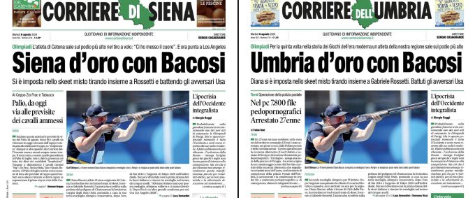 Un modo antico e immortale di ottenere l’attenzione dei propri lettori da parte dei quotidiani locali è quello di fare leva su una frequente curiosità che i lettori possono avere per le relazioni con le loro città delle notizie di scala maggiore. Relazioni che a volte possono essere rilevanti e significative, mentre altre volte sono enfatizzate in modi piuttosto artificiosi, riferendo per esempio lontanissime parentele locali di personaggi famosi, o passeggere relazioni geografiche di protagonisti delle notizie (altre volte quelle relazioni esistono, ma sono comunque piuttosto insignificanti rispetto alla notizia). Nei giorni delle Olimpiadi la fragilità di queste “notizie” è stata assai visibile nelle scelte con cui due quotidiani dello stesso gruppo editoriale – Corriere dell’Umbria e Corriere di Siena – hanno riferito della medaglia d’oro della tiratrice Diana Bacosi, nata a Città della Pieve ma cresciuta a Cetona, città separate da pochi chilometri e dal confine di regione.
