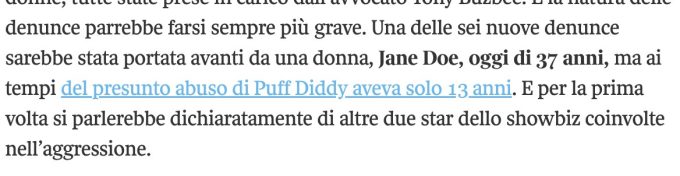 Tantissimi siti di news italiani ( Corriere.it, Vanity Fair, Open, hanno scritto nei giorni scorsi delle denunce per abusi sessuali contro il musicista P. Diddy, citando una donna che si è aggiunta alle accusatrici e che – stando agli articoli – si chiamerebbe “Jane Doe”. Il fatto è che “Jane Doe” (come il suo analogo maschile “John Doe”) è in realtà il nome fittizio usato di norma nelle pratiche giudiziarie americane per indicare persone di cui non si vuole rivelare l’identità.