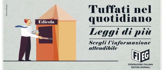 La Federazione degli editori di giornali ha pubblicato su alcuni quotidiani, sabato, una campagna – piuttosto spartana – per invitare a comprare i quotidiani stessi in edicola, investendo sul messaggio di una loro maggiore attendibilità.