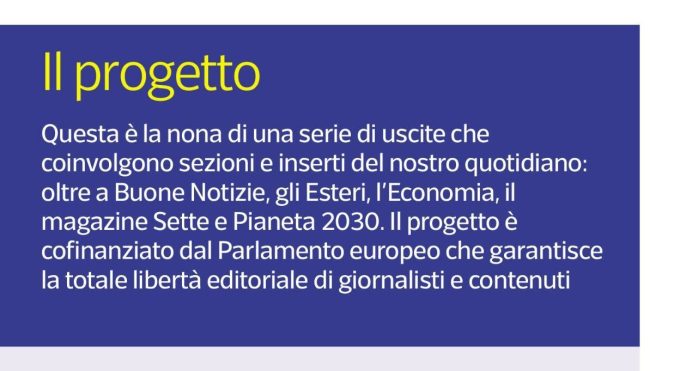 Il Corriere della Sera ha ospitato sabato due pagine di articoli dedicati a iniziative dell’Unione Europea, prodotte in seguito a un accordo economico con il parlamento europeo. La genesi delle pagine era correttamente e chiaramente esplicitata in una breve didascalia, a differenza da quanto avviene abitualmente con simili progetti sponsorizzati comprati da inserzionisti privati.