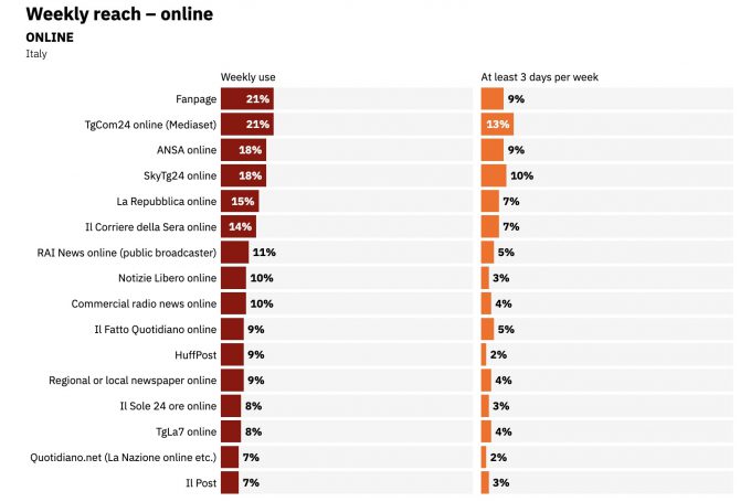 Il Reuters Institute – che è un autorevole istituto di ricerca legato all’università di Oxford e sovvenzionato dal gruppo editoriale internazionale Thomson Reuters – ha pubblicato un suo ricco report annuale sullo stato del giornalismo digitale. Lo trovate qui e raccoglie molti dati e sondaggi sul tema e sulla percezione dei lettori (una piccola ma buona sintesi in italiano è stata fatta sulla newsletter Ellissi ). Tra le varie rilevazioni pubblicate negli spazi dedicati ai singoli paesi ( qui un riassunto delle cose italiane, con gentili parole per i risultati del Post ) ci sono le percentuali della fiducia dei lettori nei confronti di alcune delle testate di ciascun paese, scelte dall’istituto: accompagnate da una nota che spiega come “solo le testate qui sopra sono state incluse nell’indagine, che quindi non va considerata come una classifica di quelle ritenute più affidabili”, nota che alcune testate citate non hanno preso molto in considerazione.