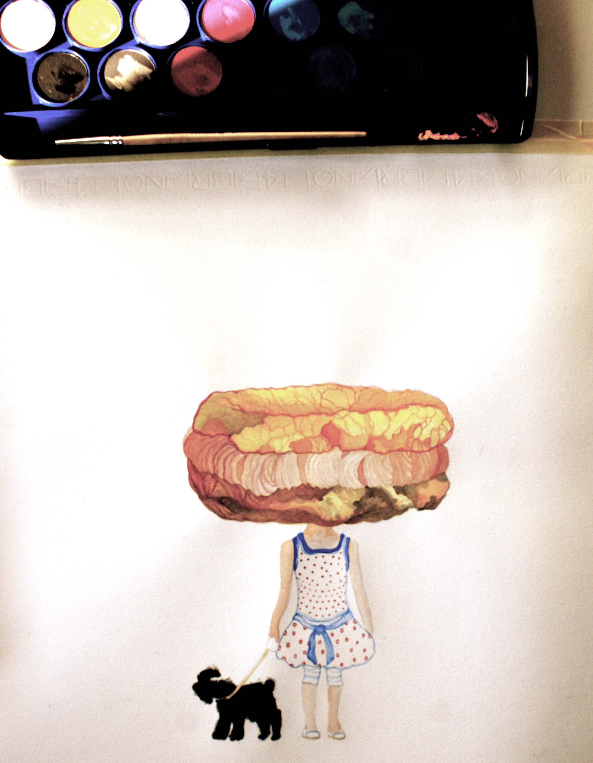Ho iniziato una luUuuUuUUnga serie ad acquerello. Questa è una “enfant macaron” che è declinabile in una “bagel kiddo” nel caso.