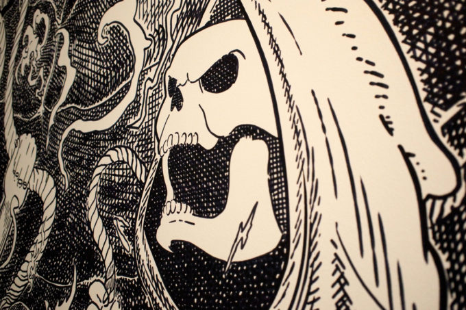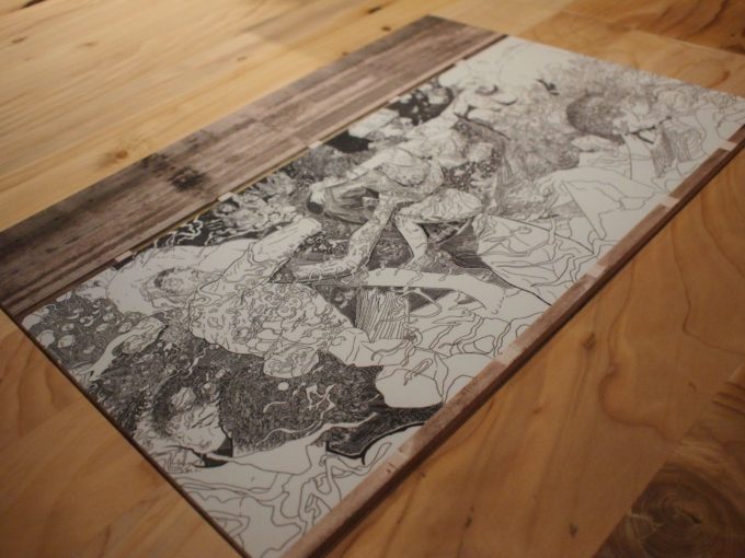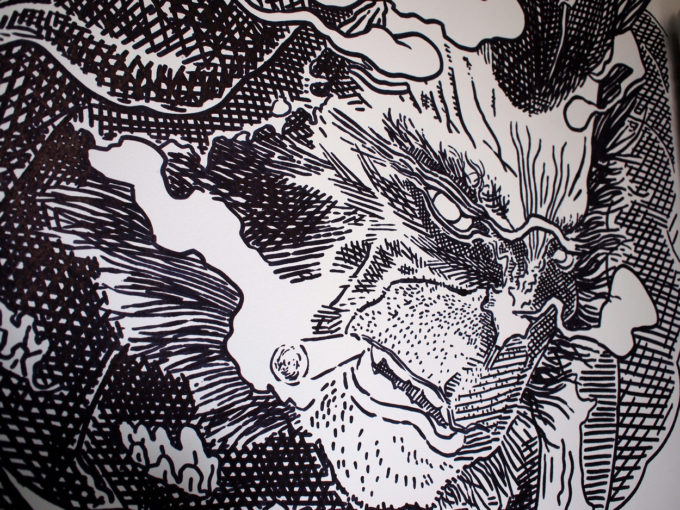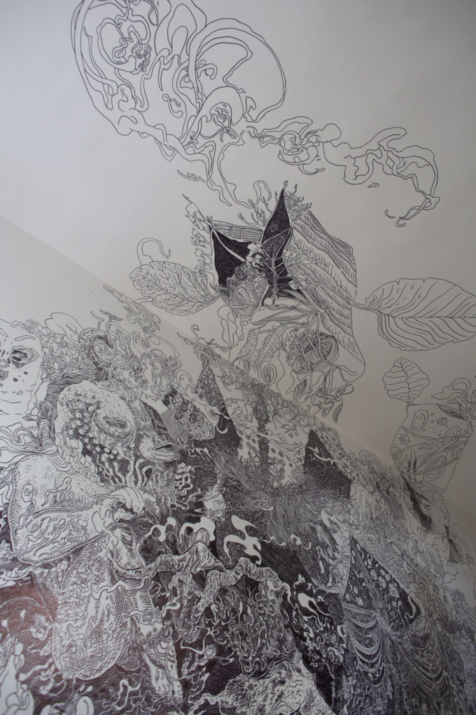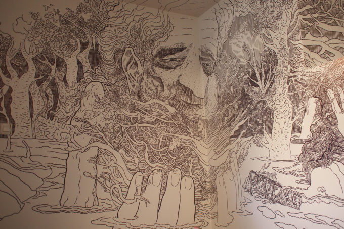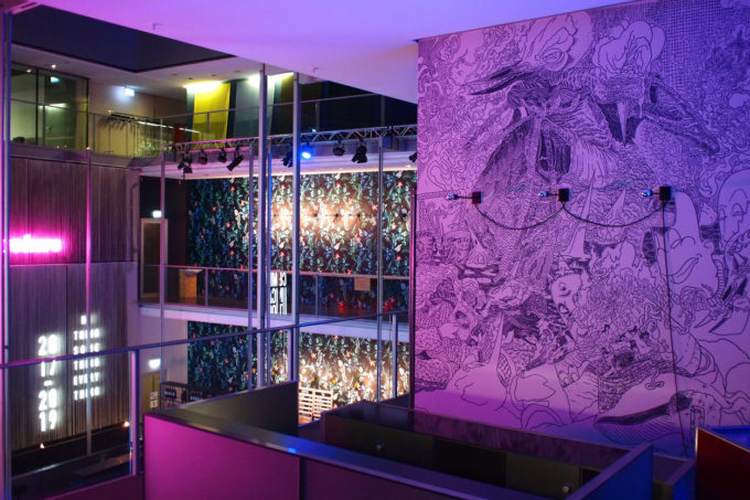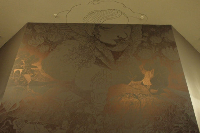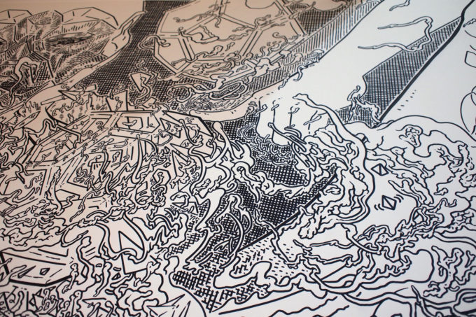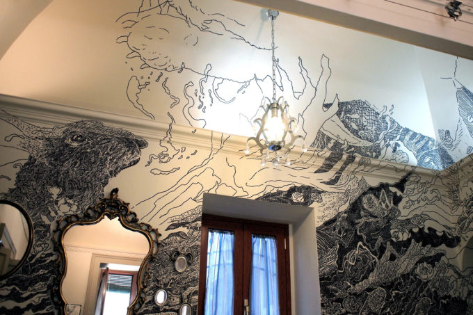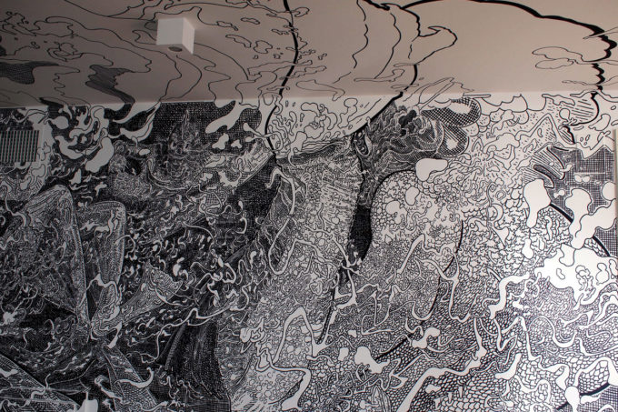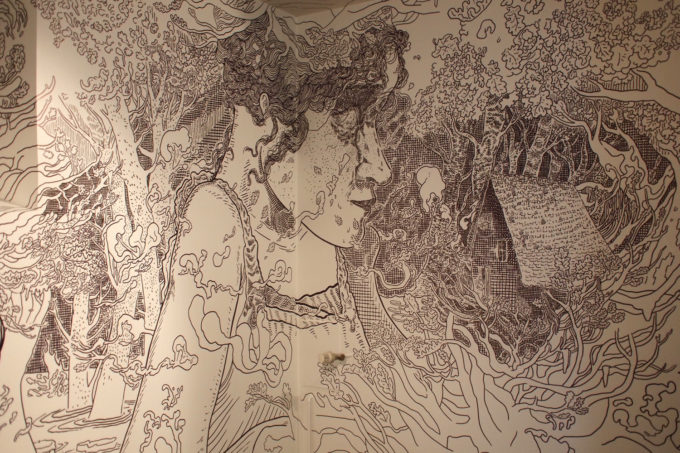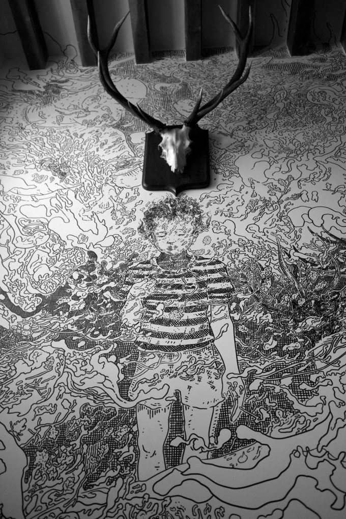 Avevo visitato quel posto diversi mesi prima per il lancio del monografico del primo anno di Scribblitti da parte di Slanted. Per l’occasione avevo disegnato durante la sera lungo una vetrata interna.