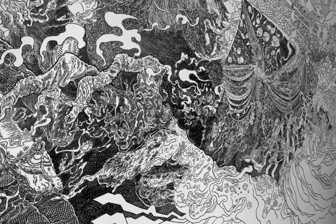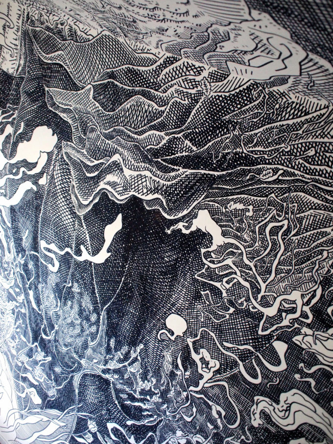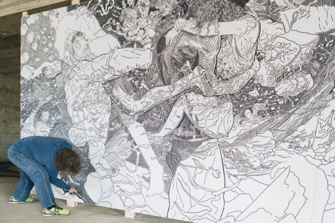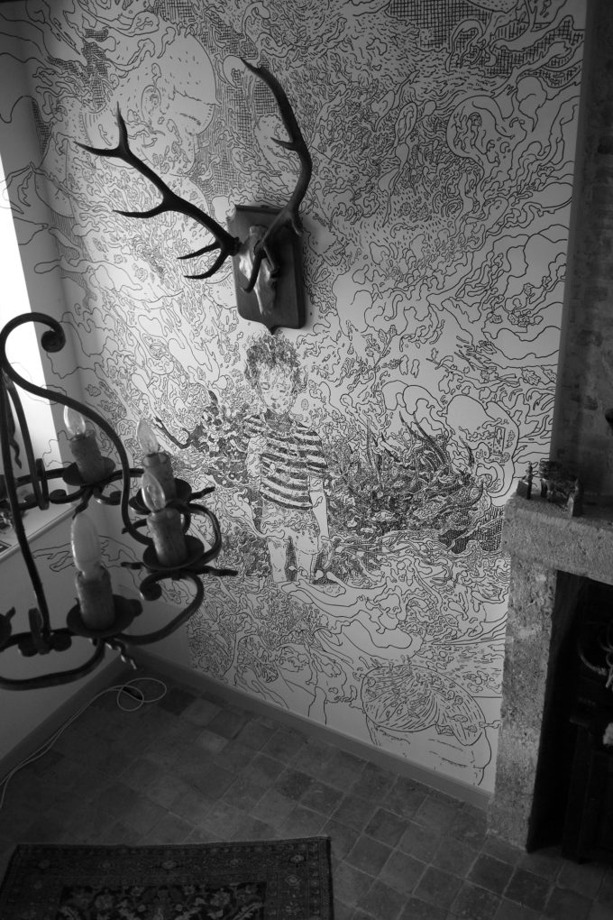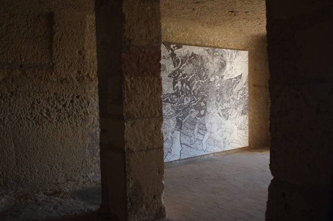 Scribblitti nasce come piccolo progetto indipendente che dopo due anni, test dopo test dopo test dopo test (dopo test, dopo test, dopo test), chiude il suo primo ciclo con una presenza in Biennale. È la seconda volta che un mio lavoro arriva in Biennale a Venezia e volevo vedere cosa sarei riuscito a fare dopo. Ora che qualcosa ho fatto e sono un po’ indaffarato nel tribolare tra nuove modalità di interviste e ascolto, di disegno e test su diversi materiali, riesco a restituire questo arco narrativo molto meglio. Non è facile, ma ci provo. Che sono lento, quello che faccio è lento, non è roba per centometristi, non sono un centometrista. Dopo Bruxelles, riprendendo la narrazione da dove avevo smesso di scrivere, sono stato invitato nel quadro di una residenza d’artista a realizzare tre lavori per il Festival H2O nel centro della Francia vicino Blois, lungo la Cisse, un affluente della Loira.